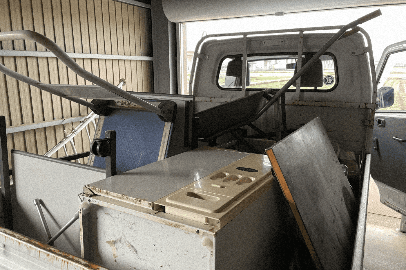 はじめて軽トラを借りたけど、座席直角でエモいし積載能力がハンパない。