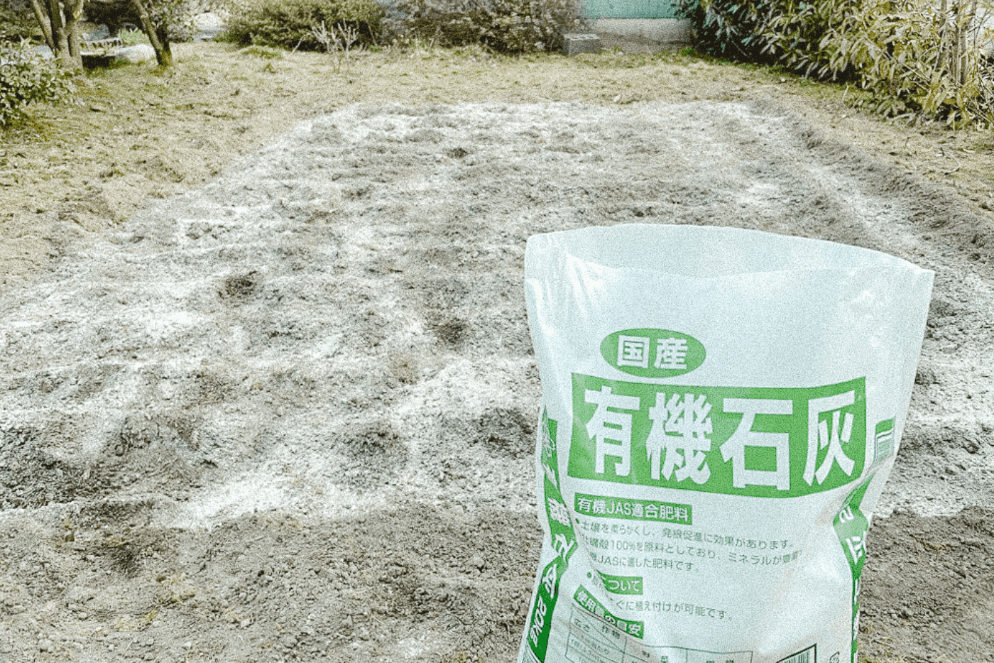 消石灰(しょうせっかい)や苦土石灰(くどせっかい)は水酸化カルシウムで、強いアルカリ性だ。石灰が堆肥/肥料と組み合わさると、堆肥内の窒素と化学反応を起こしてしまい、アンモニアガスとなって逃げてしまう。今回使った牡蠣殻の有機石灰の場合は、土を中和する力は強くはないけど窒素との化学反応が起こらない。