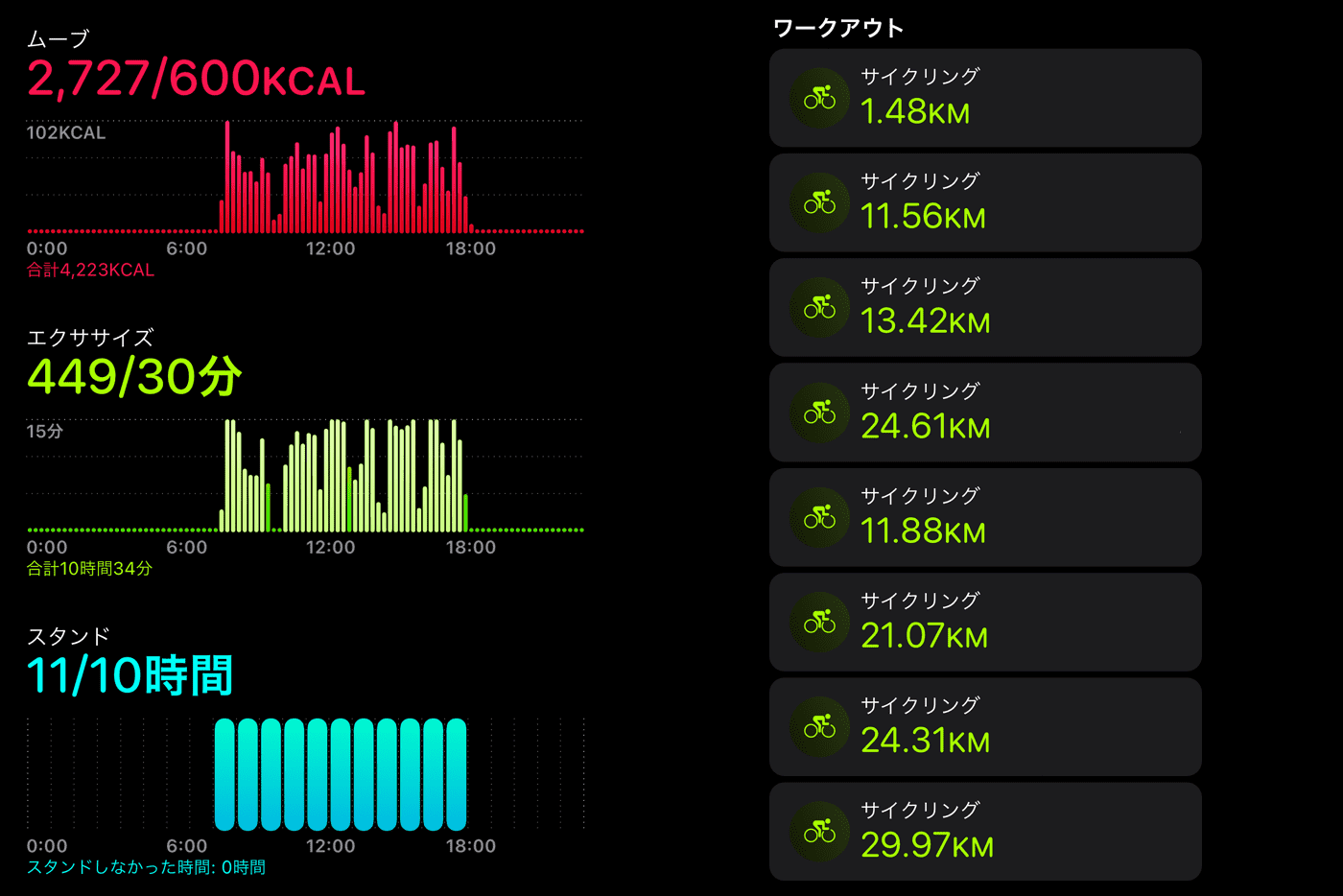 DAY96「今日は自転車で140km/消費カロリーは2,727kcal」