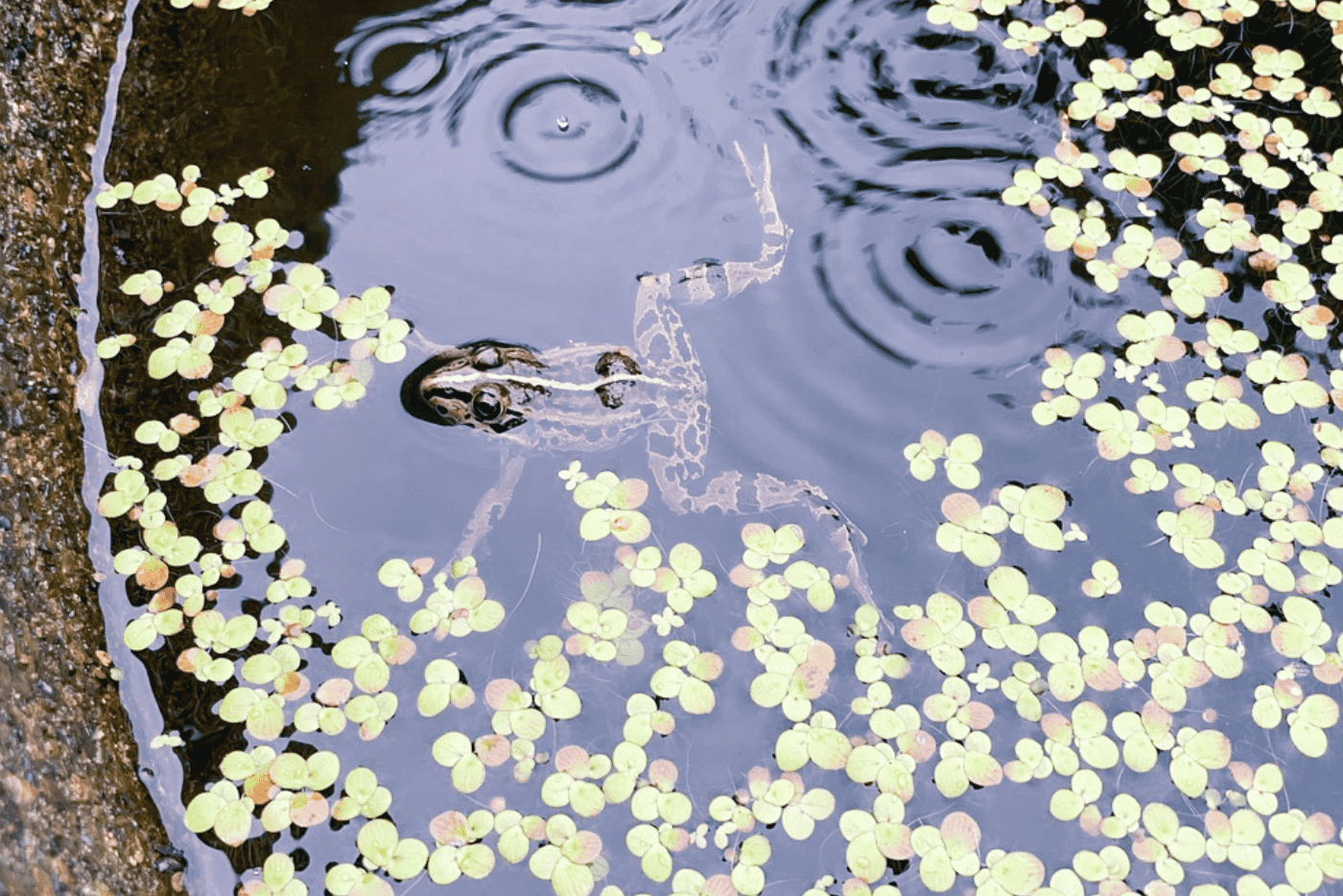 雨。近所の井戸に大きなカエルが気持ちよさそうに浮いていた。たまに聞こえる、アマガエルじゃない図太い鳴き声の主だと思う。
