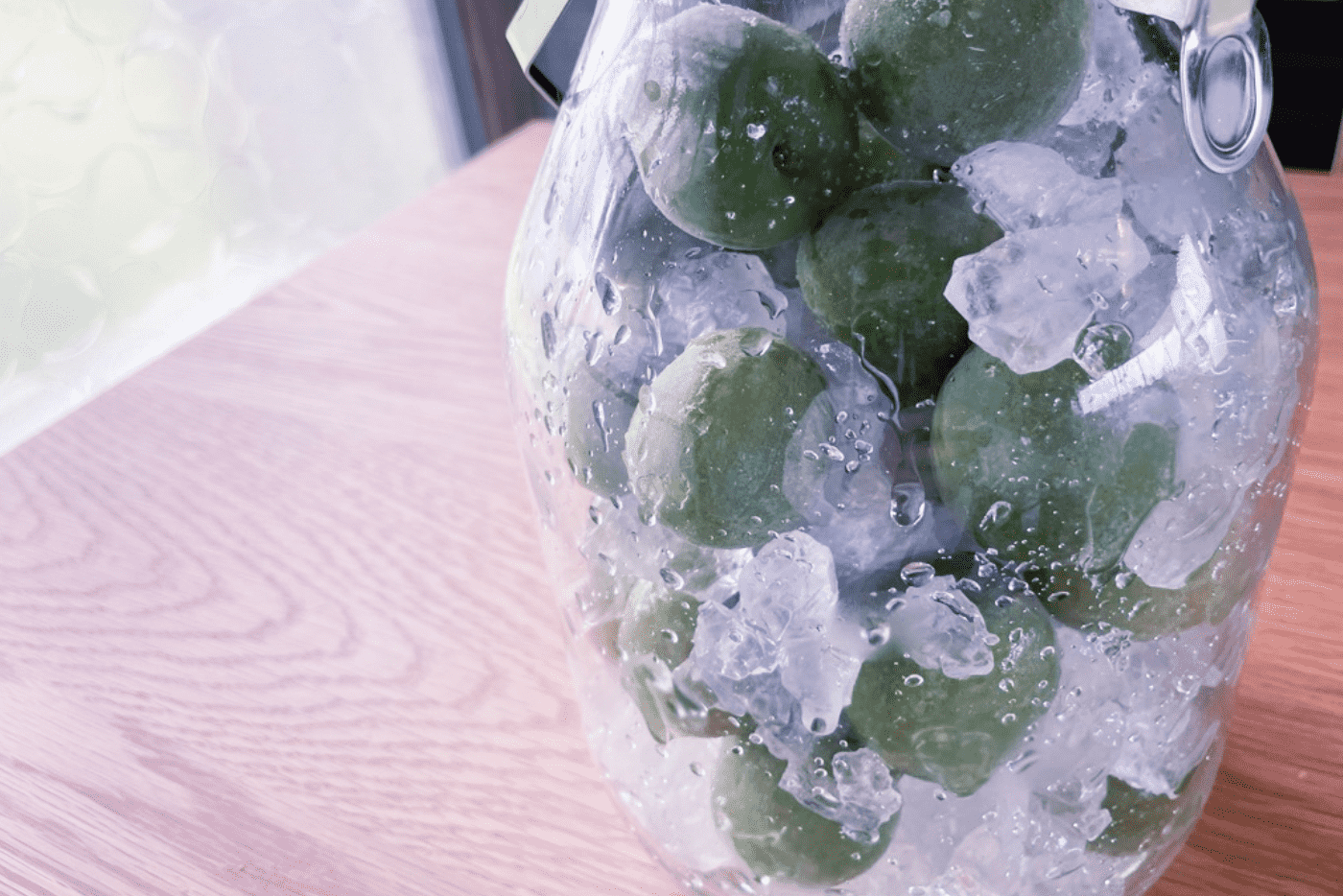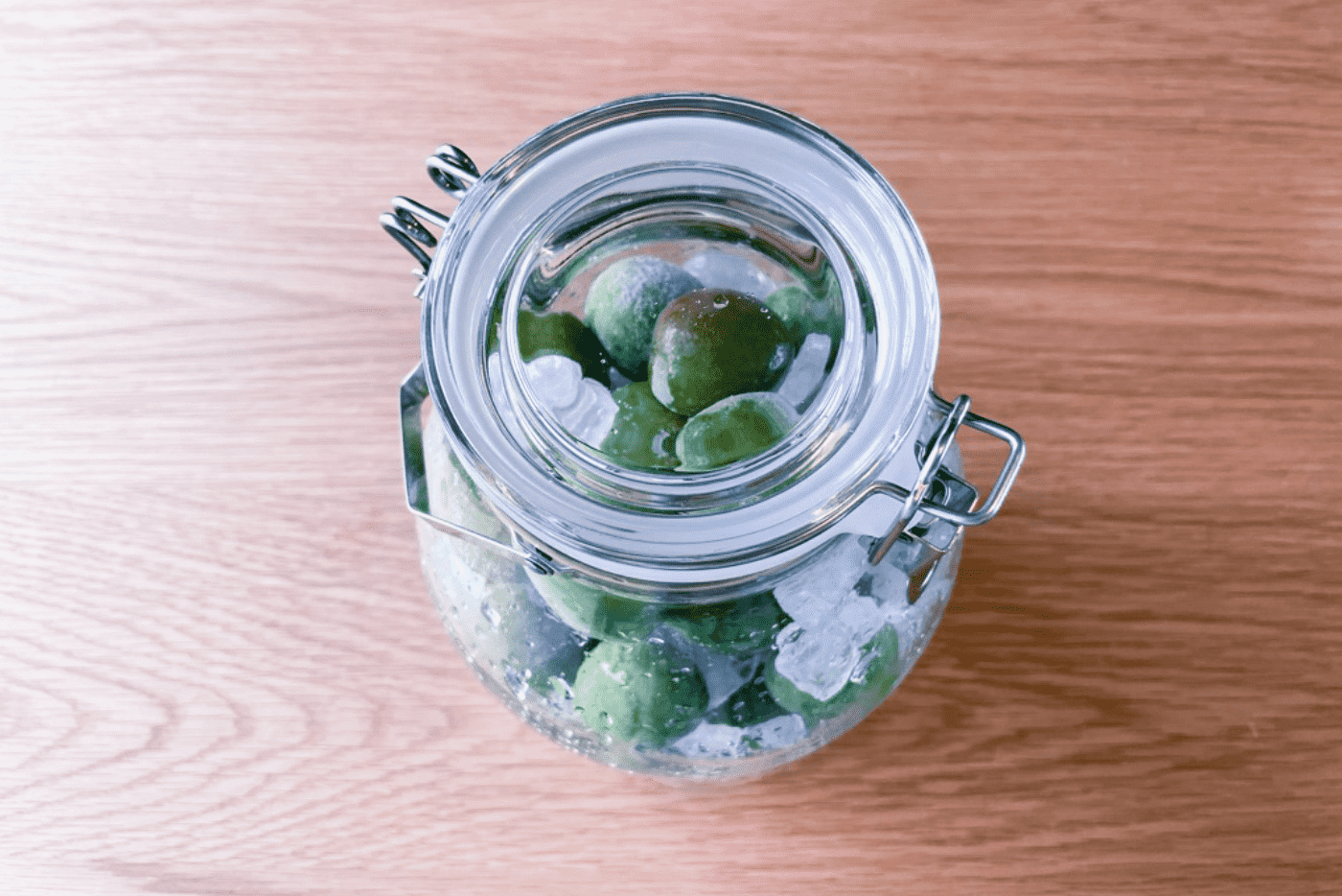 梅シロップを仕込んだ。梅を水で洗って竹串でヘタをとる。一晩冷凍庫で凍らせて梅の繊維を壊すことで浸透しやすくする。3Lの容器に梅1kg:角砂糖1kgの割合で入れる。梅1:砂糖1の割合は、糖度が60%以上になるので雑菌の繁殖を防ぐことができるから。最後に、雑菌の繁殖を防ぐのと酸味の追加のためお酢を100ml入れる。梅と角砂糖が密接することで、浸透圧で梅から水分がでてくる。角砂糖がすべて溶けきるように毎日容器を揺すって梅を動かす。角砂糖が溶け切った10日目に完成。保存用の瓶に移し替えて、レッツ!梅シロップ!