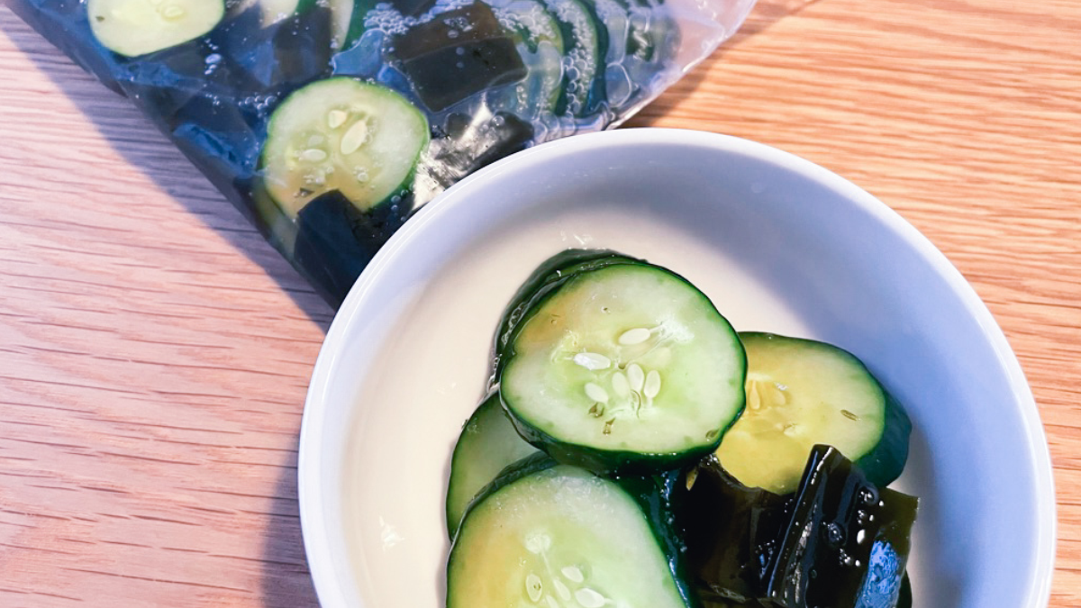 収穫が遅れて巨大化したキュウリ。スイカみたいに食感が皮と実に分かれてくる。早めに収穫したキュウリは皮の部分のみでサクサクしてるけど、巨大化するとパキッ、シャリ、ニュルという感じ。オノマトペ。
