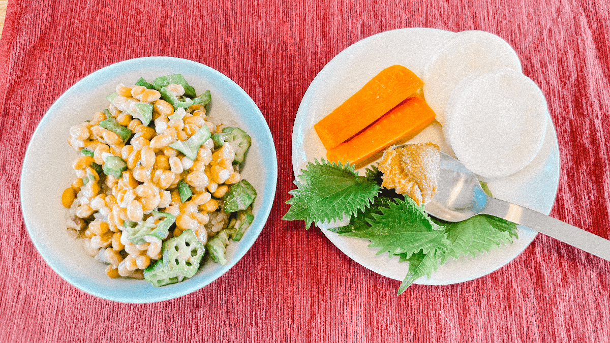 一日ニ玄米四合ト、味噌ト少シノ野菜ヲタベ。