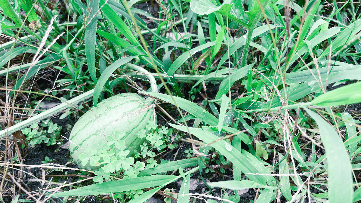 小玉スイカがすくすくと育っている。