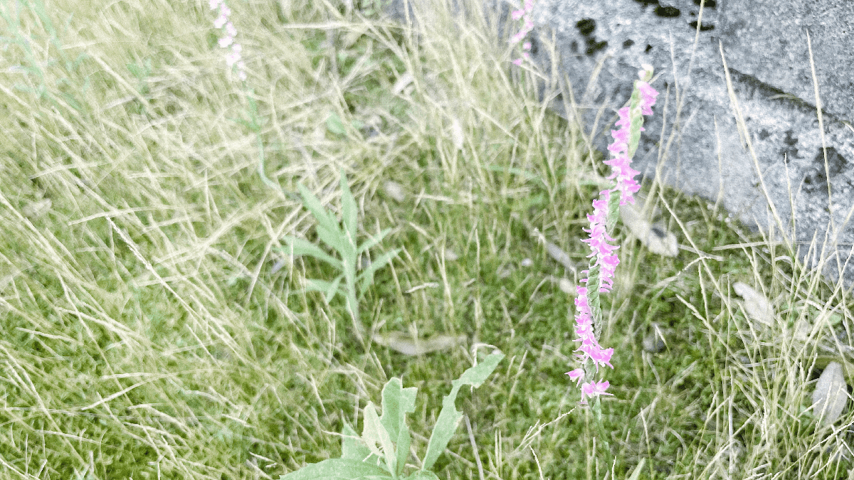 らせんに花を咲かせる植物。