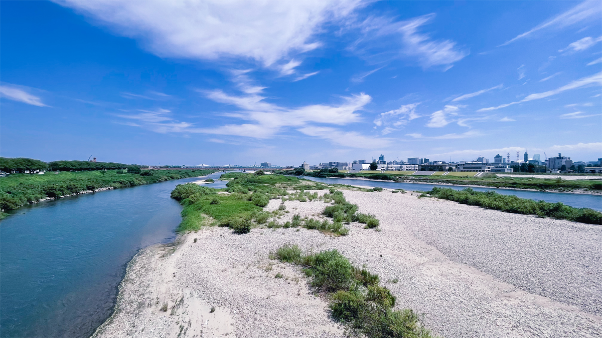 自転車で富山市に行ってコワーキングスペースSketch Lab。途中、神通川を渡るんだけど、こんな風景をみると渓流釣りをしたくなる。テンカラ竿を買おうか迷う。